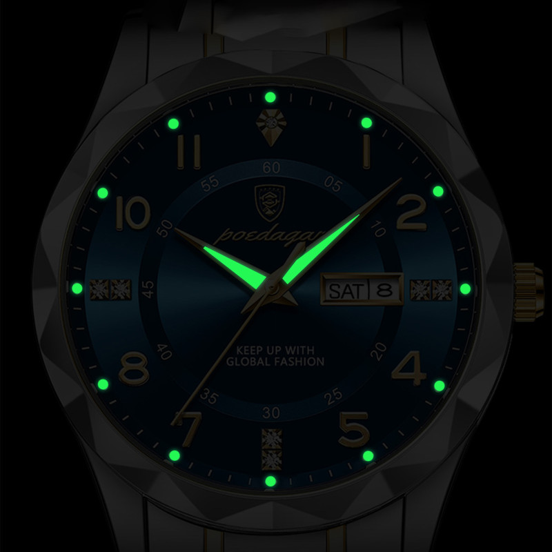 ساعة رجالية سويسرية جديدة فاخرة مقاومة للماء والخدش ومظيئة في الليل المظلم من ماركة poedagar